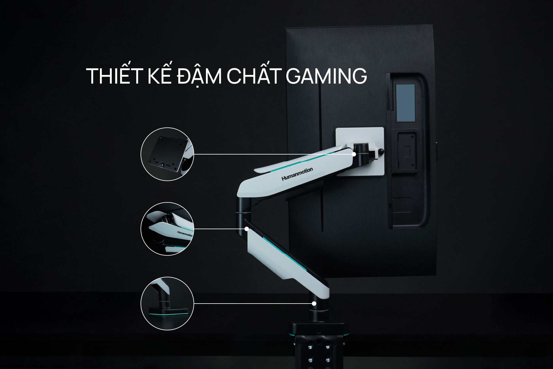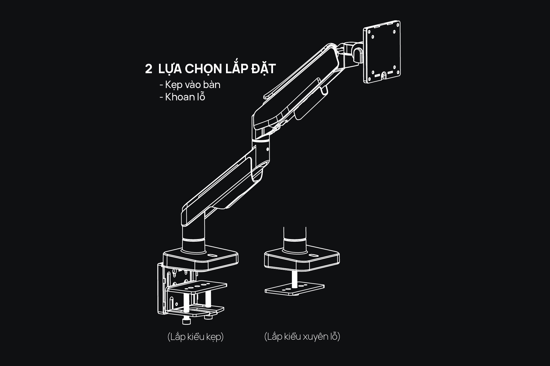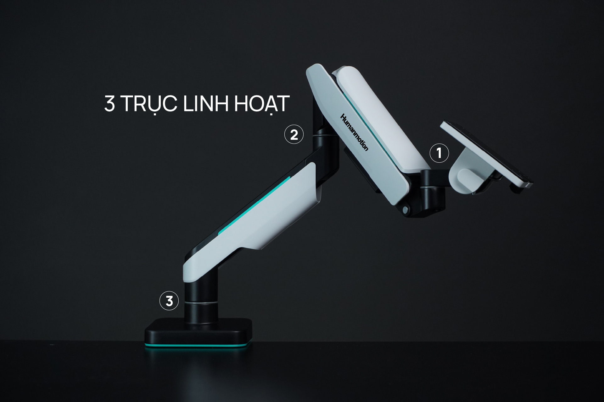 - Human Motion hỗ trợ 2 hình thức là kẹp bàn và khoan lỗ trên mặt bàn. Rất linh hoạt để khách hàng lựa chọn.