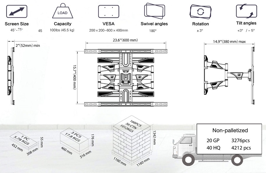 - Thiết kế phù hợp màn hình từ 40- 80inch