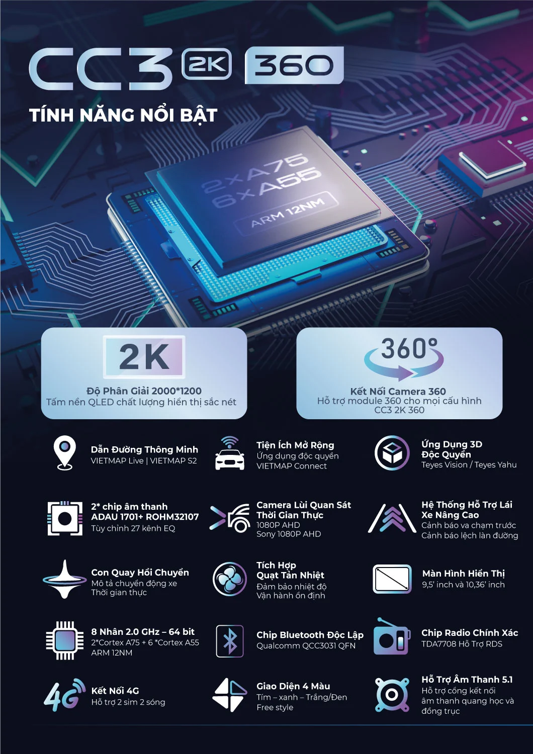 | Kết nối camera 360 | Có ( Hỗ trợ phụ kiện camera 360 ) |