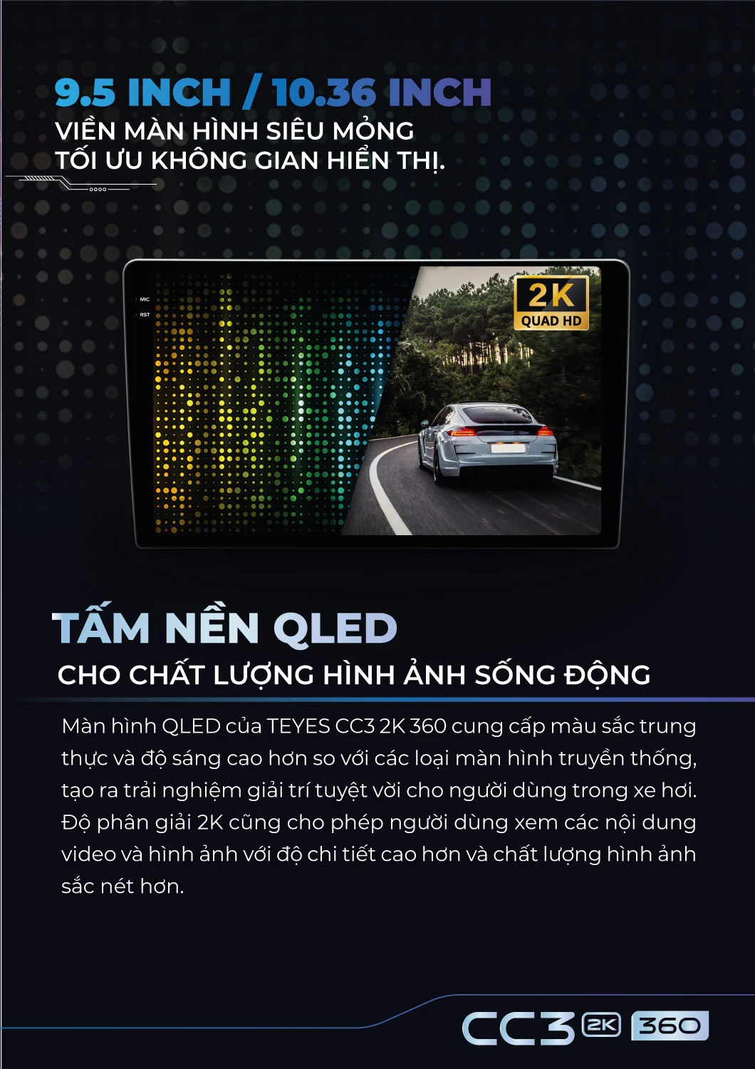| Màn hình | QLED 9.5" / 10.36" 2.5D cảm ứng đa điểm |