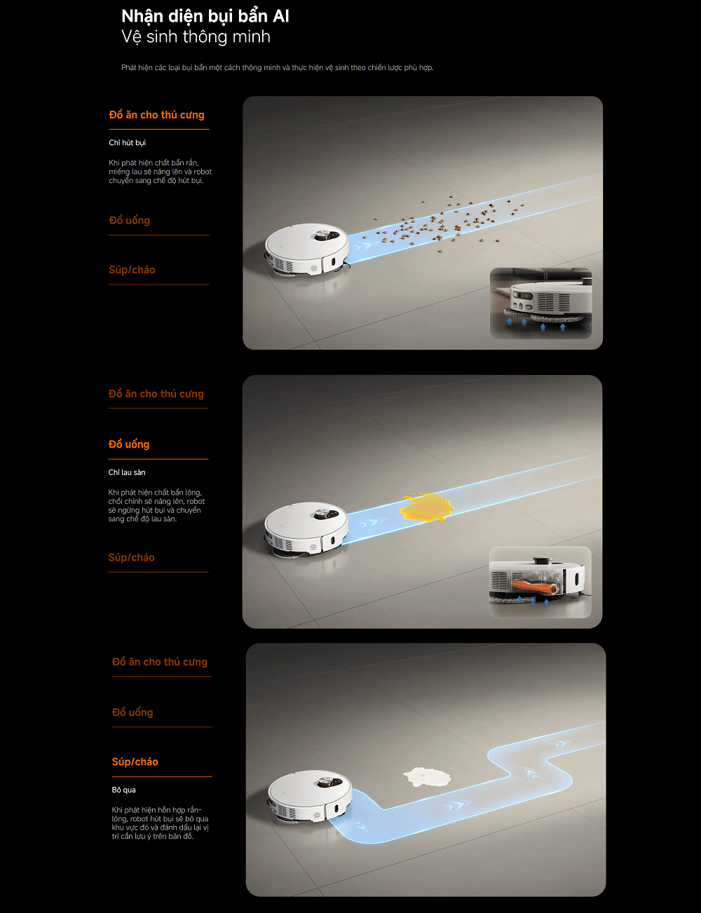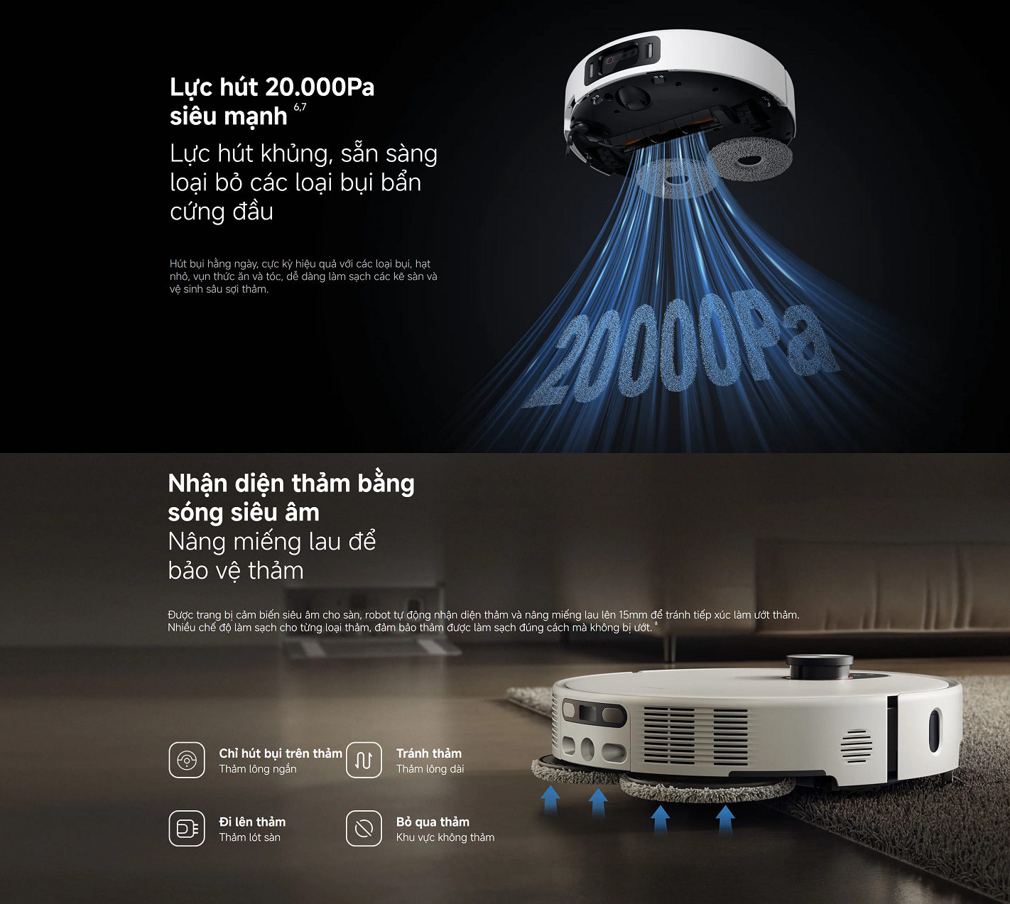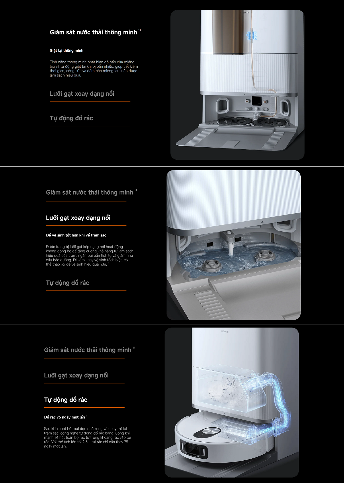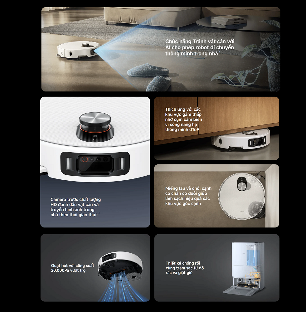 Bộ sản phẩm gồm: Robot hút bụi x1, Trạm sạc đa năng x1 (đã gắn sẵn túi bụi dùng một lần, ngăn chứa nước sạch, ngăn chứa nước bẩn và khay giặt)