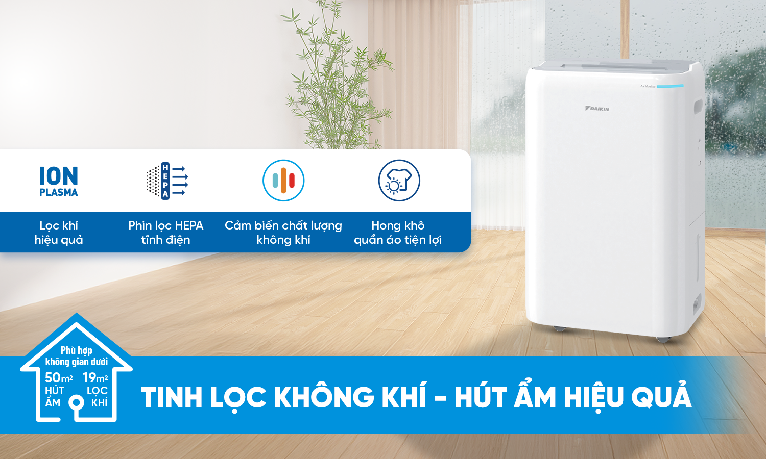 • Chế độ hút ẩm: lọc khí, hong khô quần áo, hút ẩm tự động, hút ẩm liên tục
