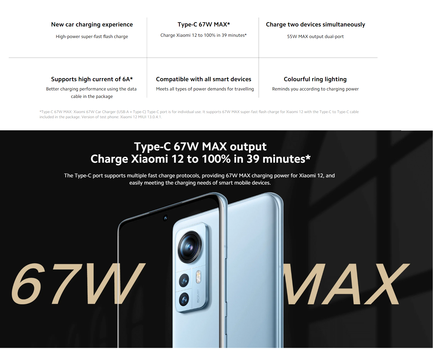 Cổng Type-C hỗ trợ nhiều giao thức sạc nhanh, cung cấp nguồn sạc MAX 67W cho Xiaomi 12, dễ dàng đáp ứng nhu cầu sạc cho các thiết bị di động thông minh.